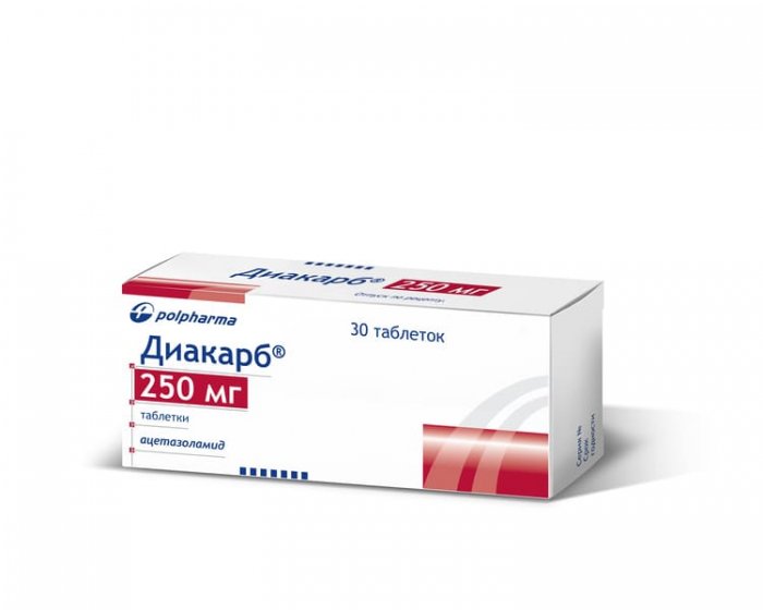 После приема внутрь ацетазоламид быстро всасывается из желудочно-кишечного тракта. Его максимальная концентрация в крови (Cmax) после приема 500 мг достигается через 1—3 ч и составляет 12—27 мкг/мл; определяемая концентрация в плазме сохраняется в течение 24 ч после приема препарата [13]. Ацетазоламид проникает через плацентарный барьер, а также в небольших количествах в грудное молоко. Применение ацетазоламида в терапевтических концентрациях сопровождается высокой связью с белками плазмы (>96%). Выведение из организма происходит за счет активной секреции в проксимальных канальцах почек [14, 15]. Препарат не накапливается в тканях.