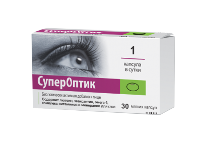 Препарат «Супероптик» относится к группе биологически активных добавок к пище и оказывает положительное действие на структуру глаза. Комбинированный состав препарата включает в себя высокие концентрации лютеина и зеаксантина, а также витаминно-минеральный комплекс с антиоксидантным эффектом.